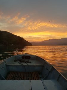 Vista do meio do canal de Bertioga no final de tarde