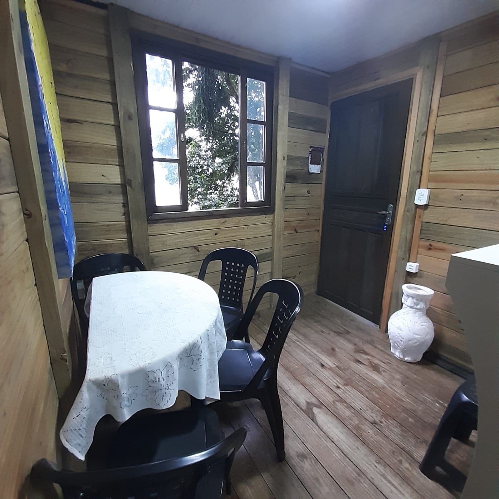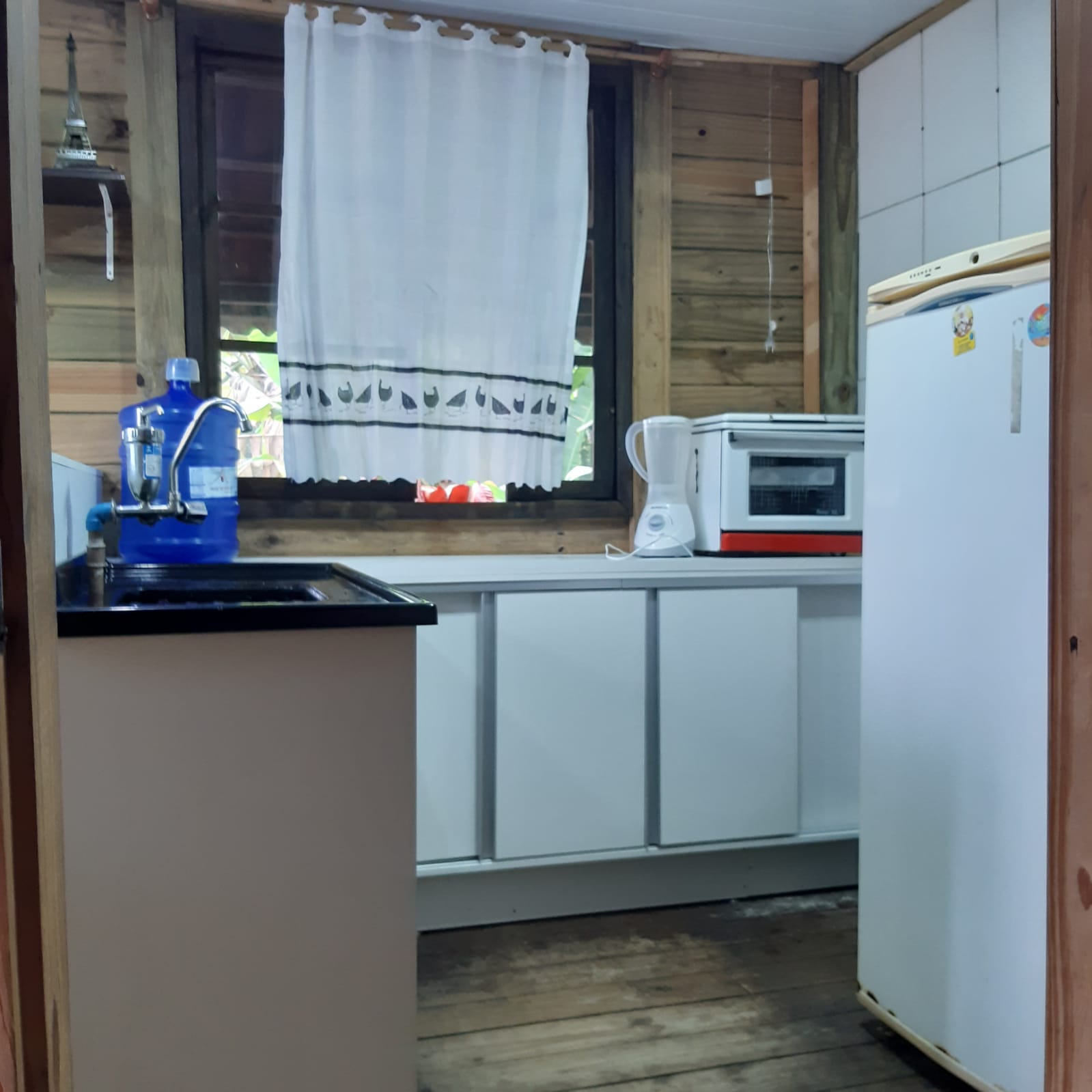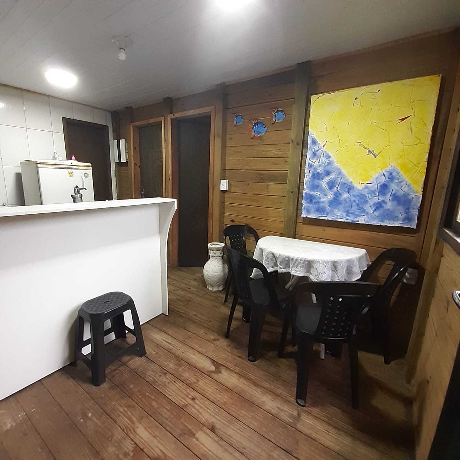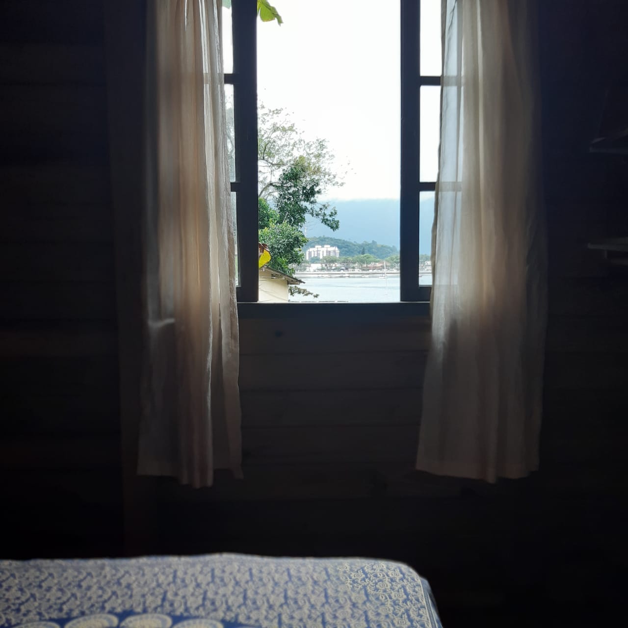 A Cabana Conta com 2 quartos, sala e cozinha, banheiro e varanda com vista para o canal de Bertioga, a cabana esta localizada próximo a Prainha Branca no Guarujá.